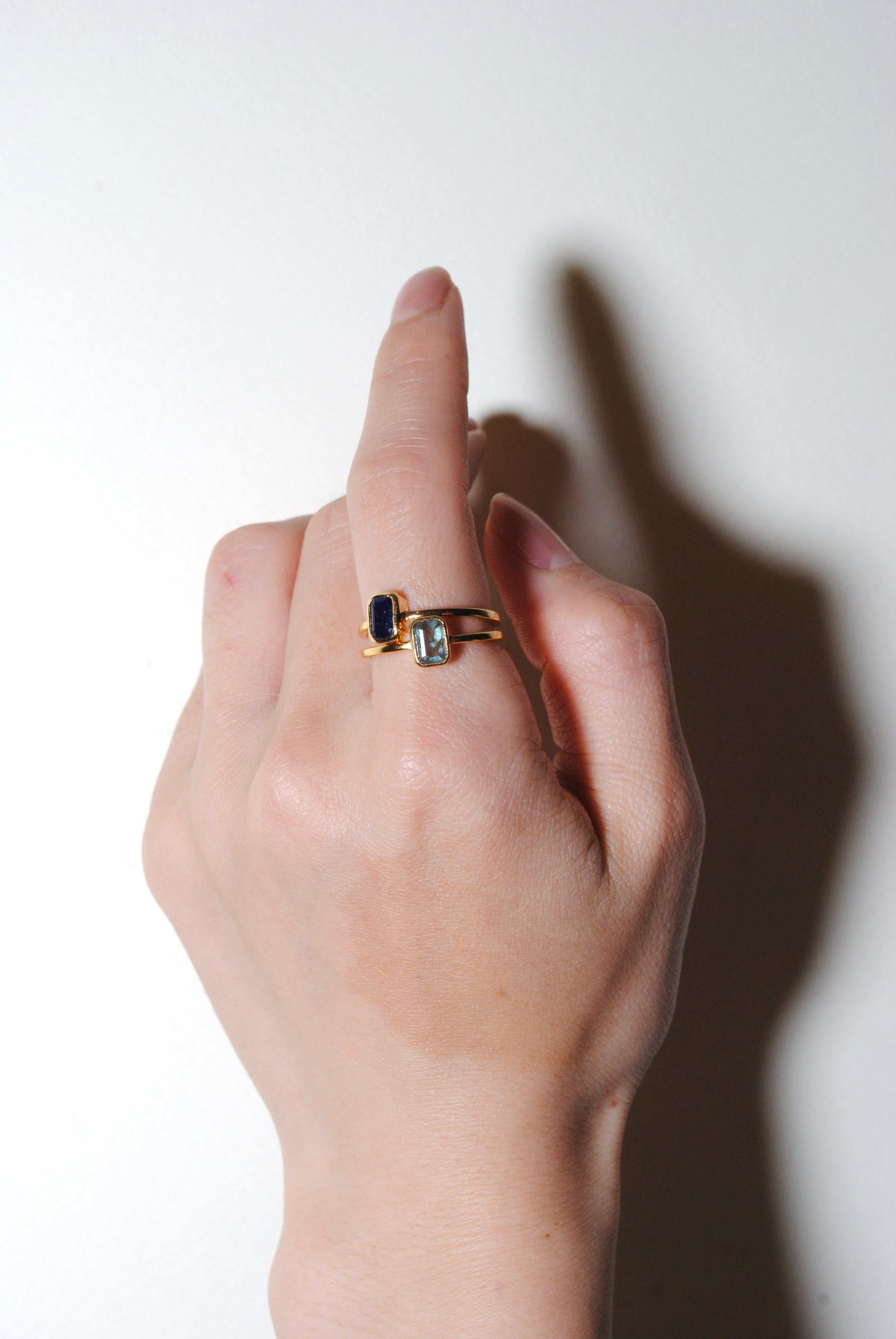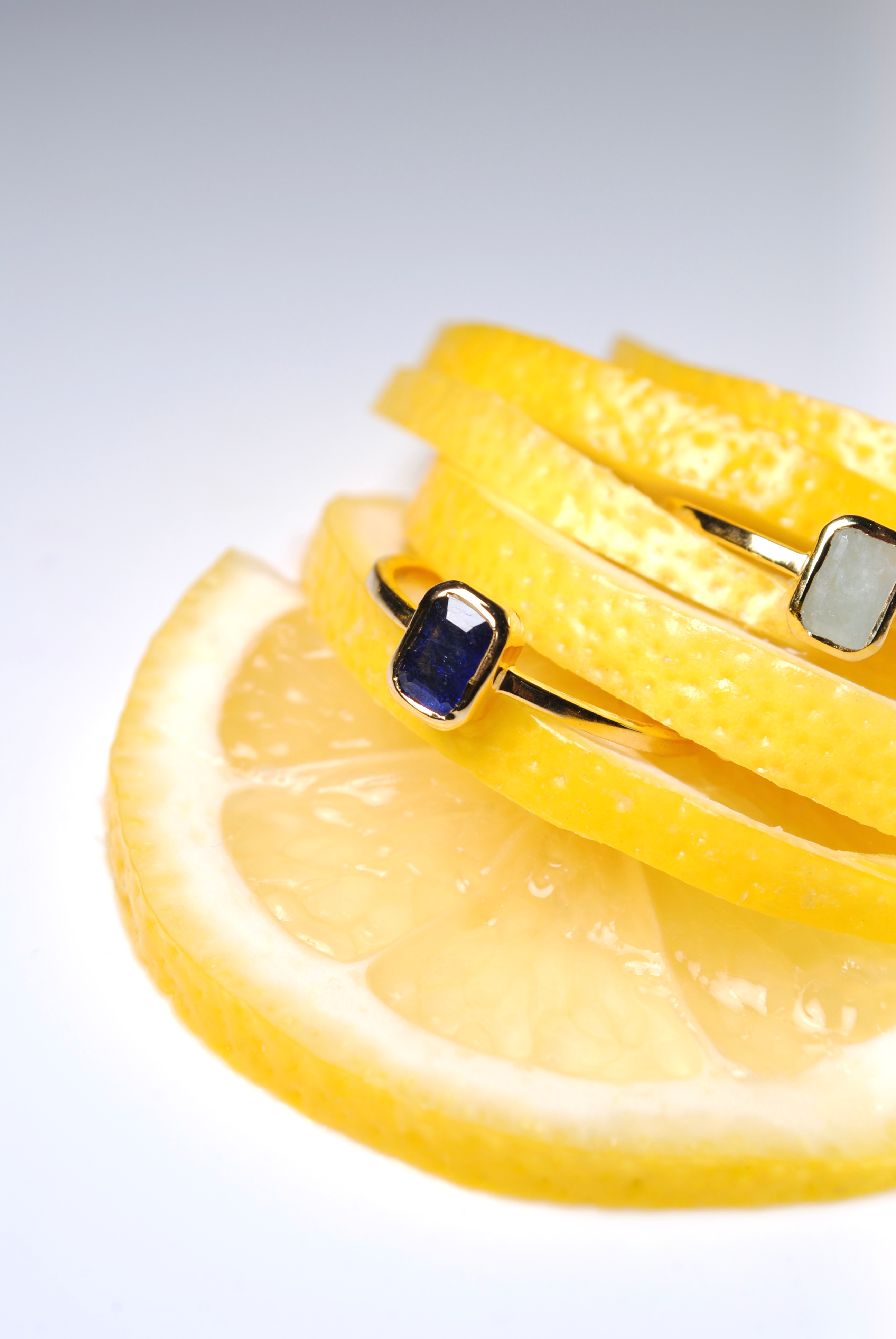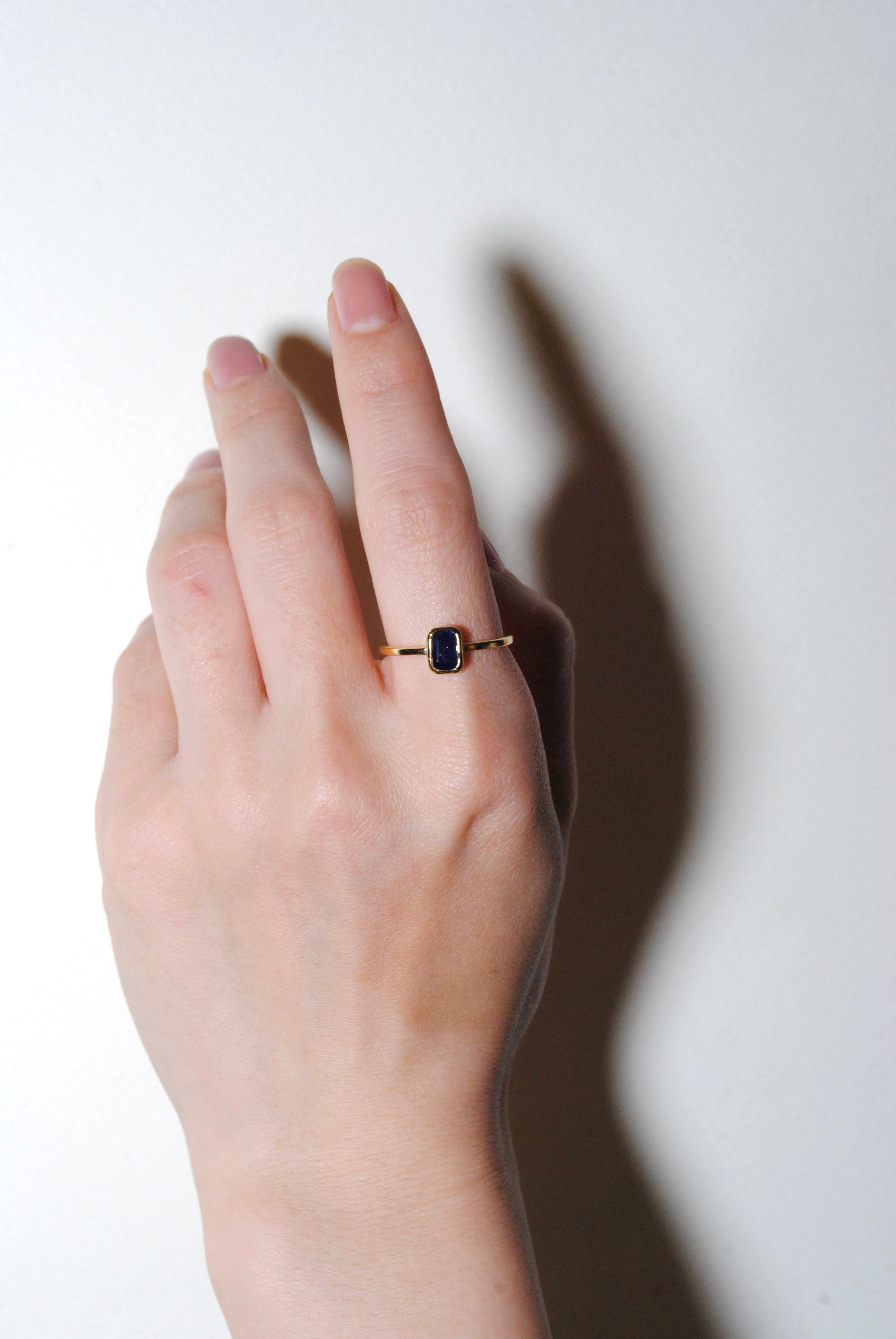 さりげない石のサイズ感は単品でつけても、重ね着けしても品のある手元に仕上がります。美しいレクタングルカットも知的で上品な印象です。