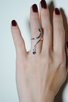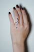 指にくるりと巻き付くラインの先に、小さな“しっぽ”のように揺れるカラーストーンが輝くリング。愛らしいシルエットの中に洗練された遊び心を宿し、見るたびに心を弾ませてくれるデザイン。