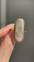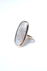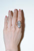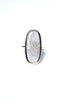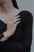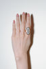 縦長のオーバルフォルムが指先に優美な存在感を添える リング。