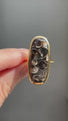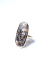 石の種類を問わず、その存在感のあるシルエットとゴールドのフレームが、深みのある手元を演出します。シンプルながらも視線を惹きつける、大人な品格を宿したジュエリーです。