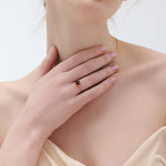 指に自然と収まる小ぶりなサイズ感と、繊細に仕立てた細身のアーム。控えめでありながら、天然石の豊かな表情を印象的に楽しめるリングです。