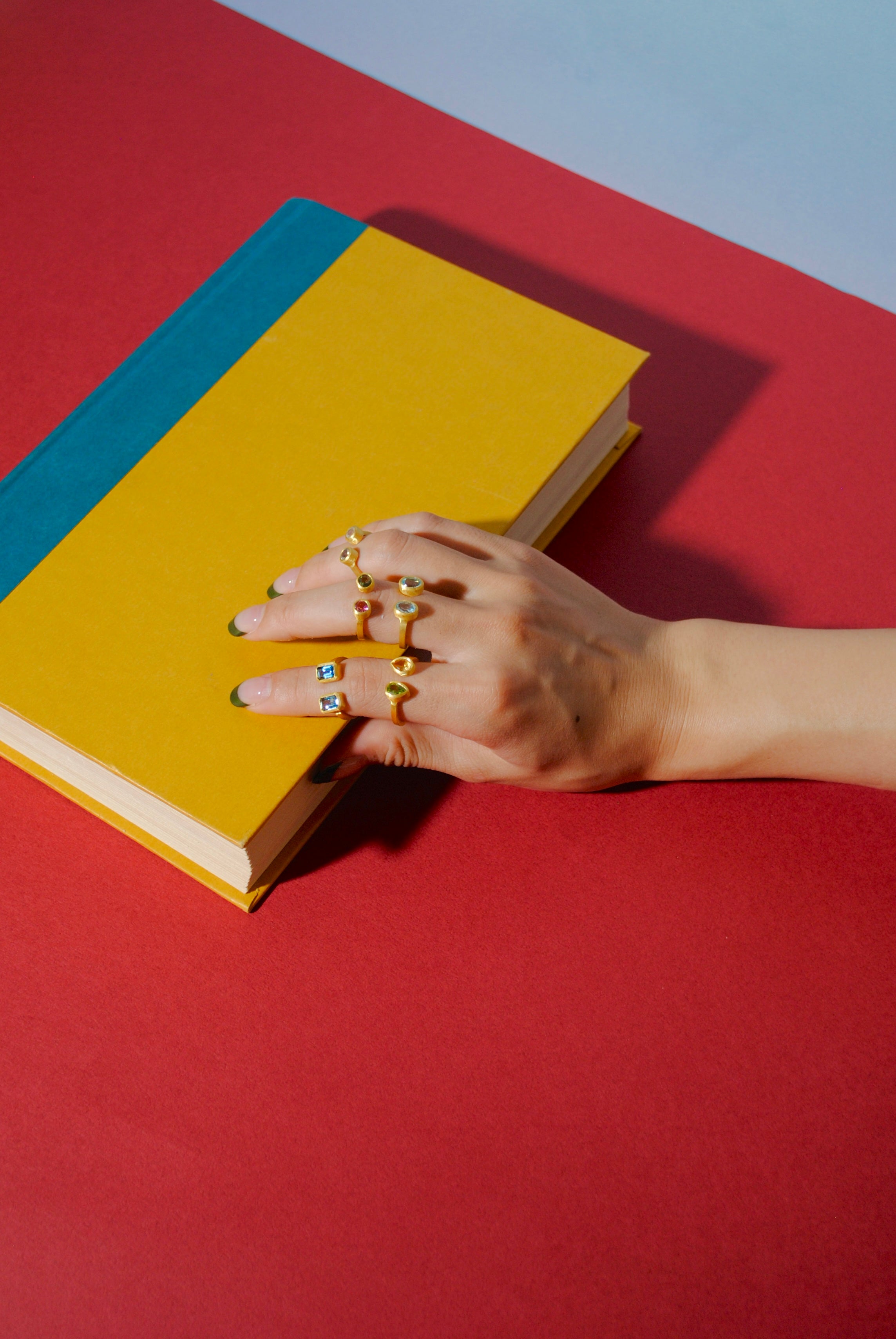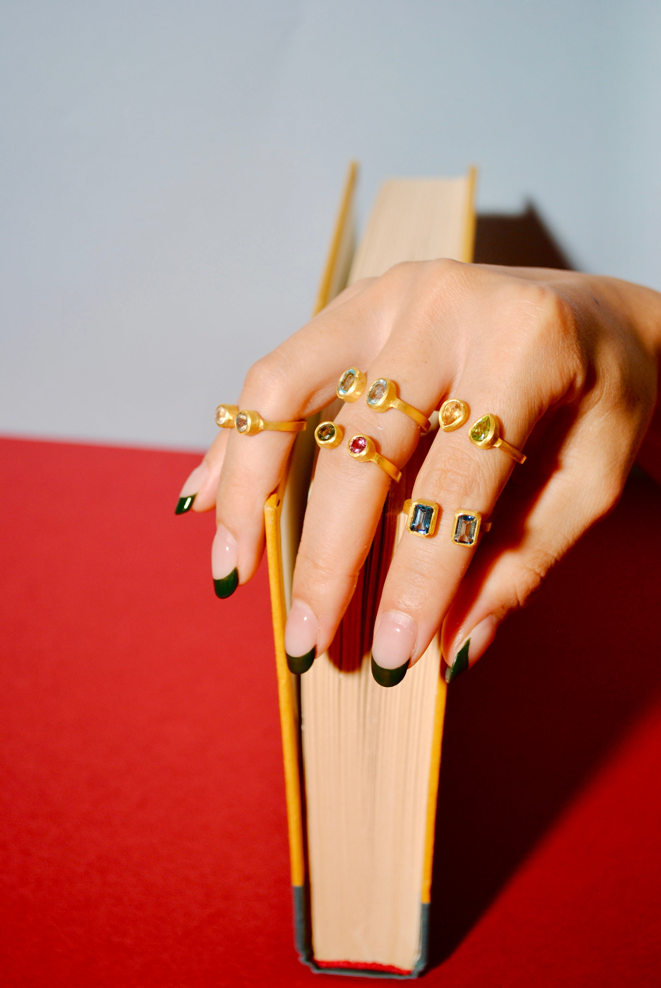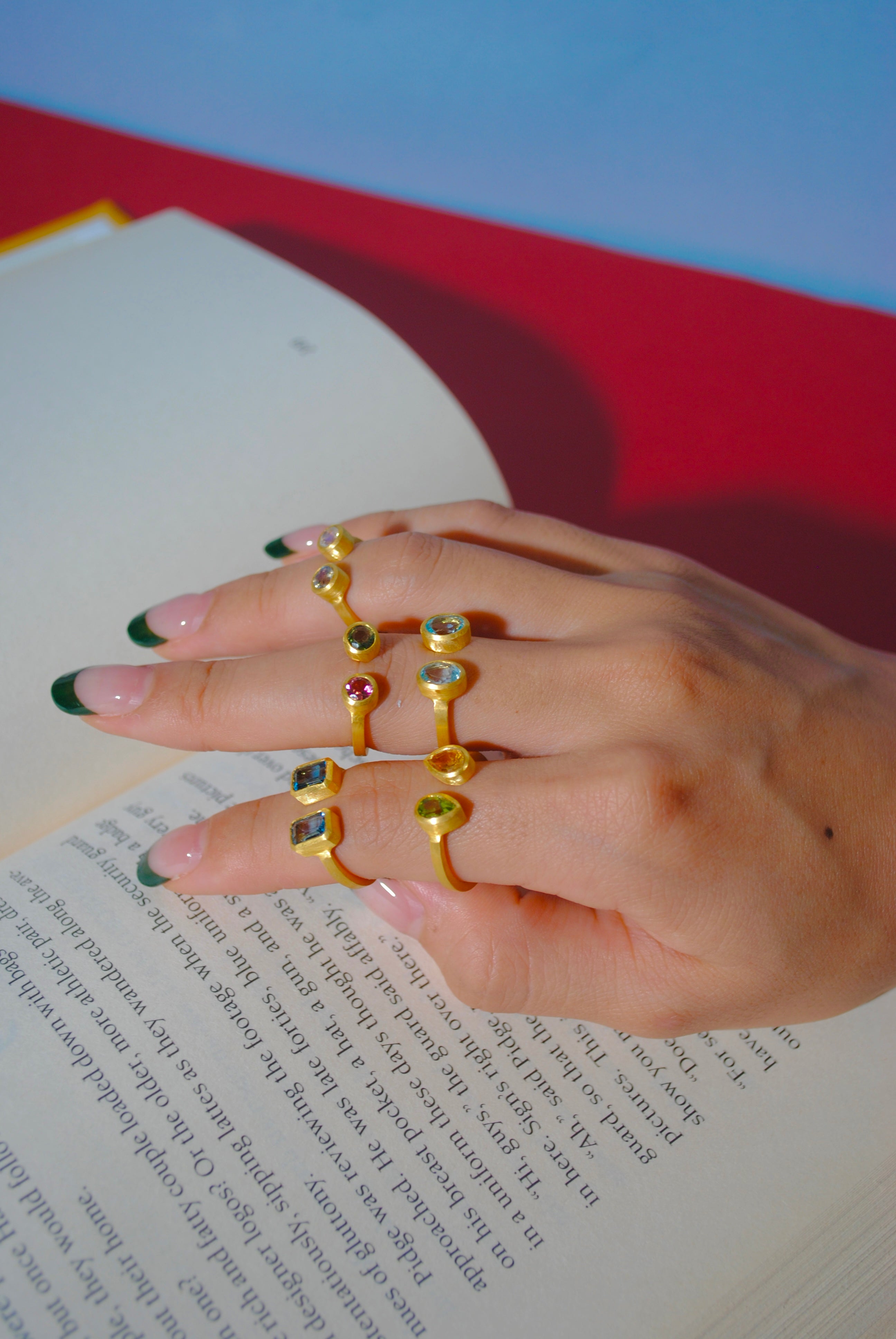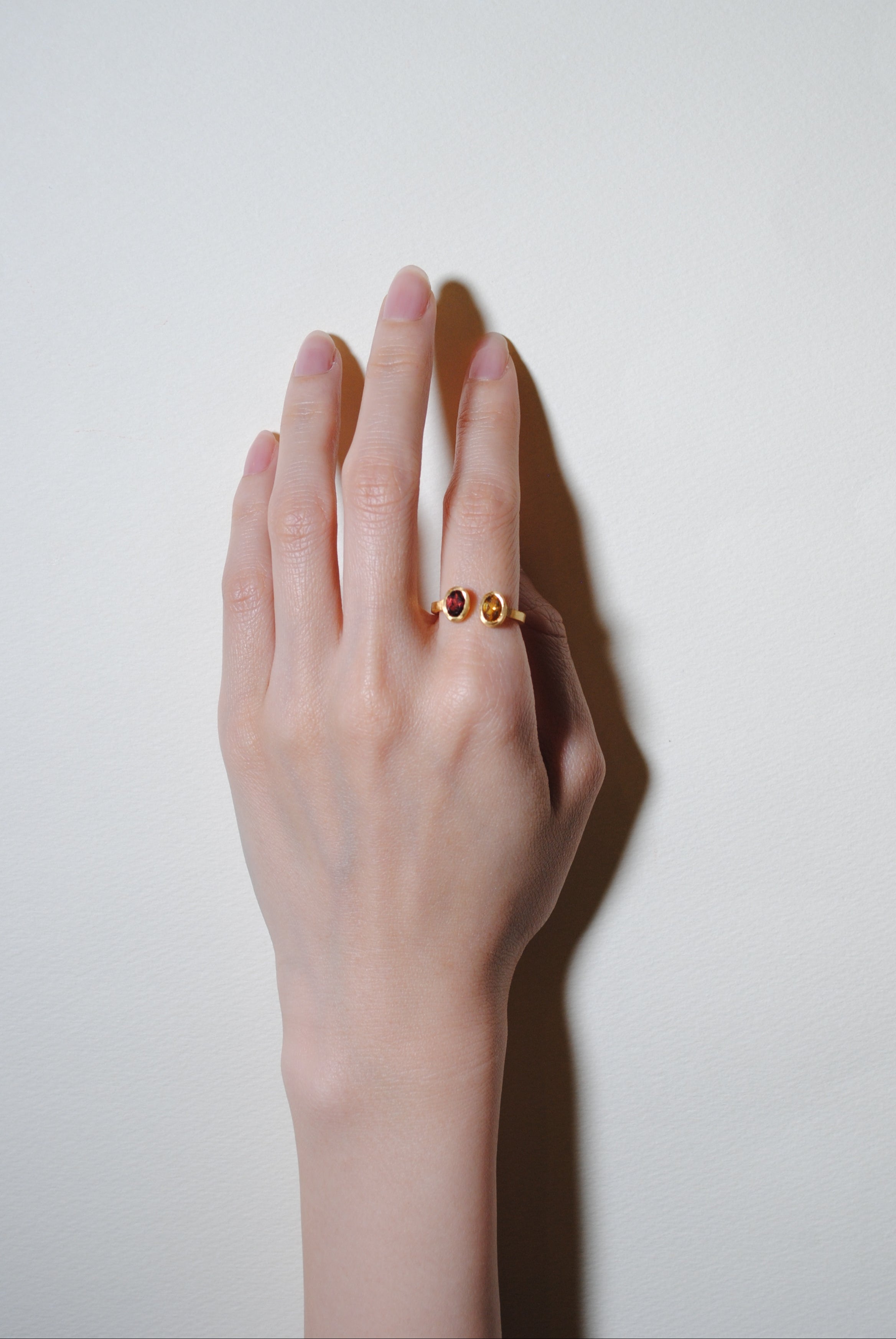 色々なストーンシェイプや石の組み合わせを楽しめるオープンリング。石の大きさに対してやや存在感のあるバンドが、オシャレに垢抜けて見える秘訣。