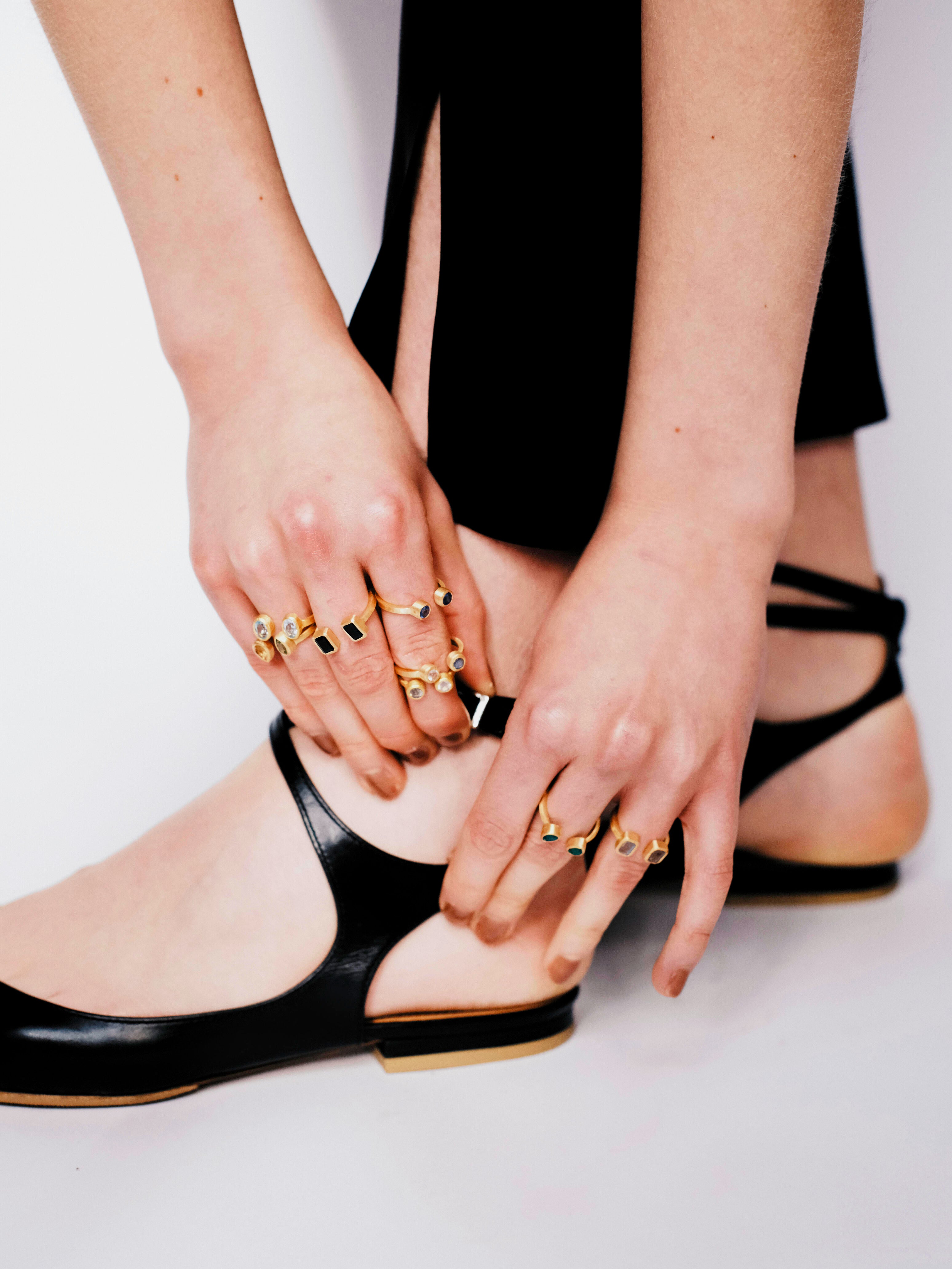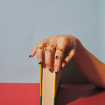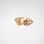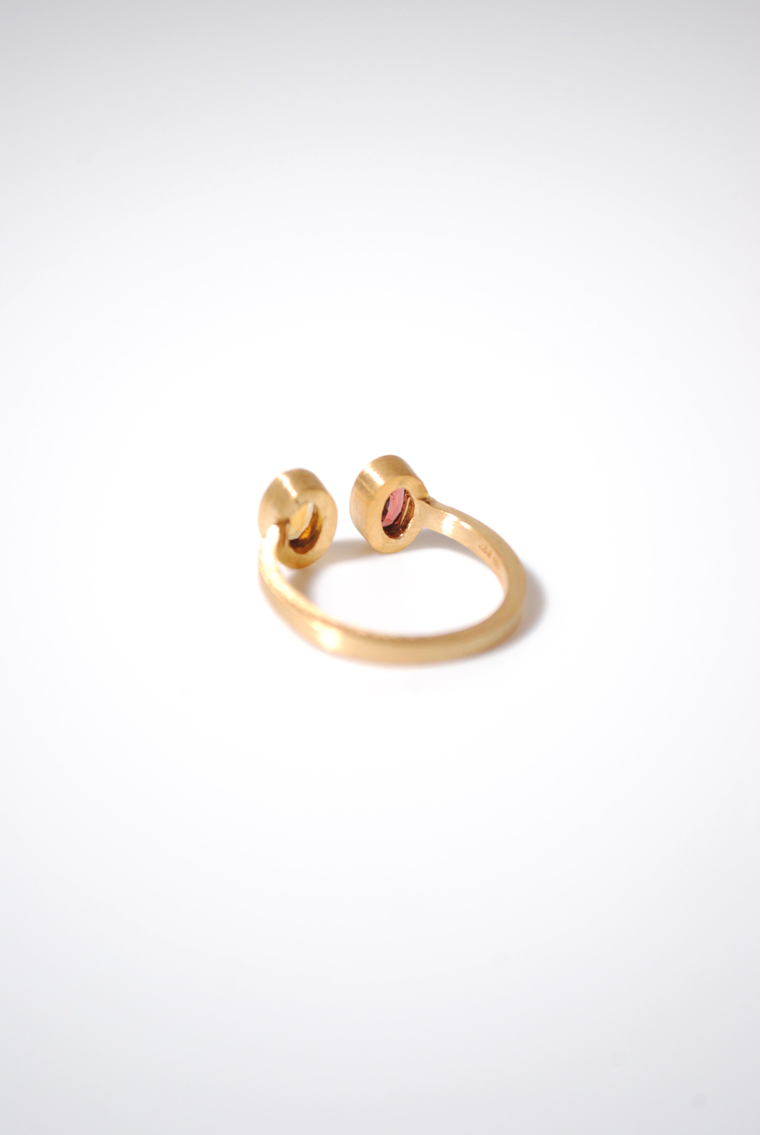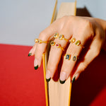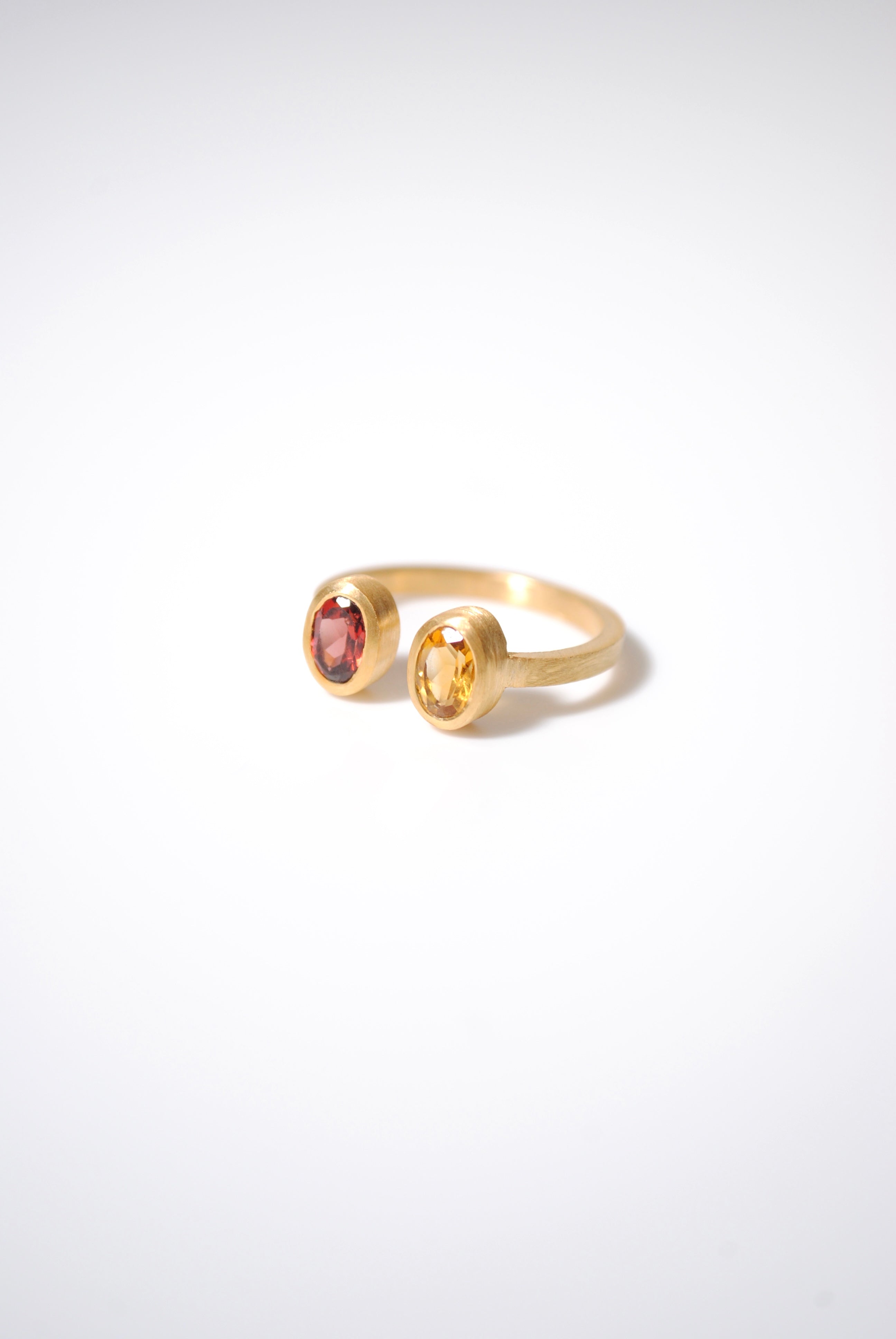 色々なストーンシェイプや石の組み合わせを楽しめるオープンリング。石の大きさに対してやや存在感のあるバンドが、オシャレに垢抜けて見える秘訣。