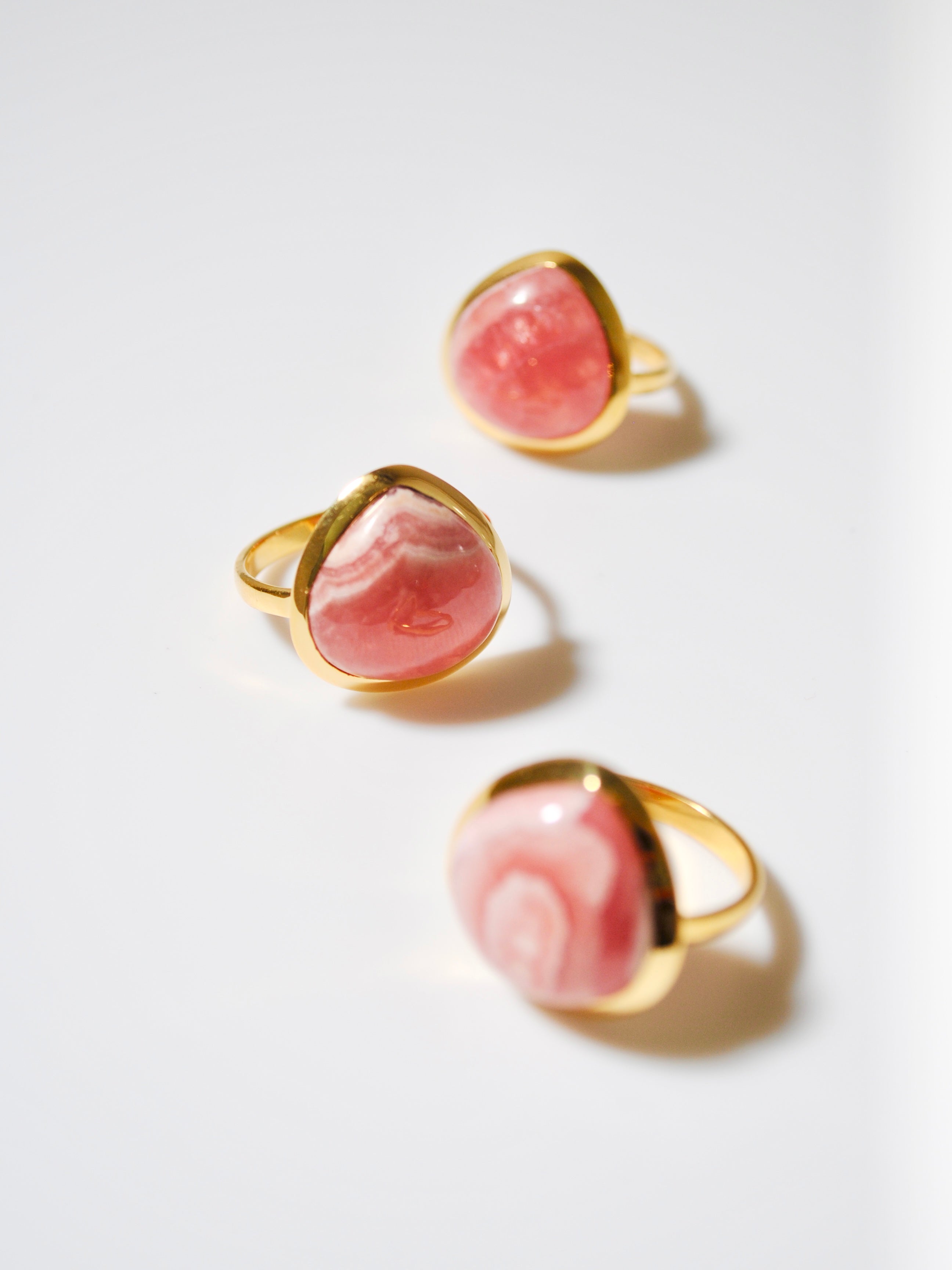 ひとつつけるだけで、今っぽくなるぷっくりのボリューム感のあるドロップ型のリング。年輪のような引き込まれそうな柄も魅力的です。都会的なスタイルが好きな人にフィットするストーン。