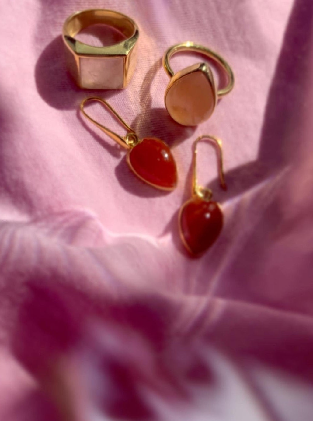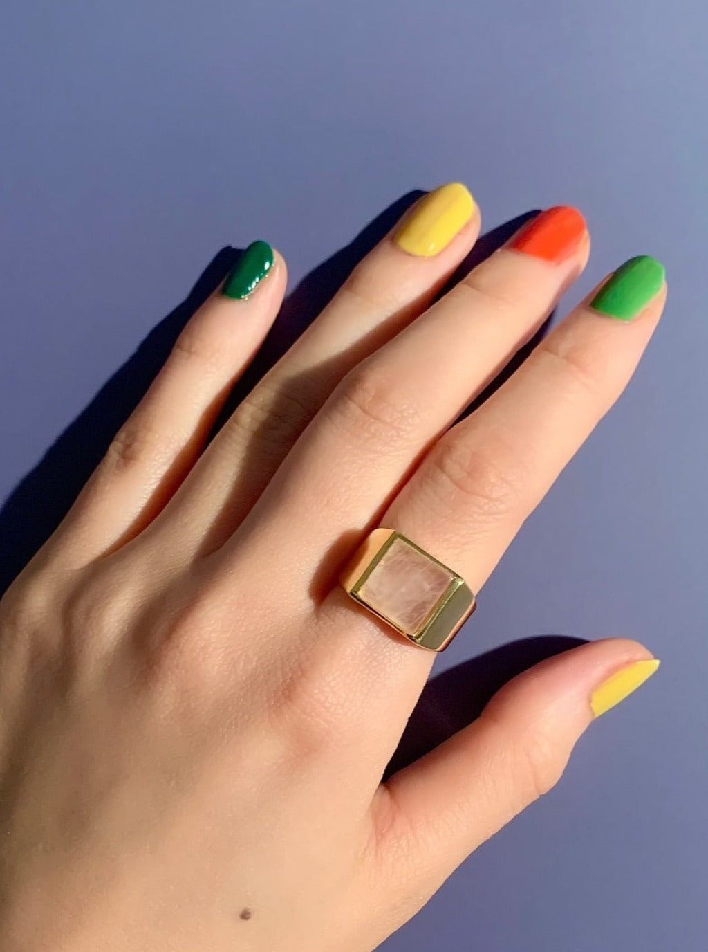 (ローズクオーツ/gold) unisex block ring