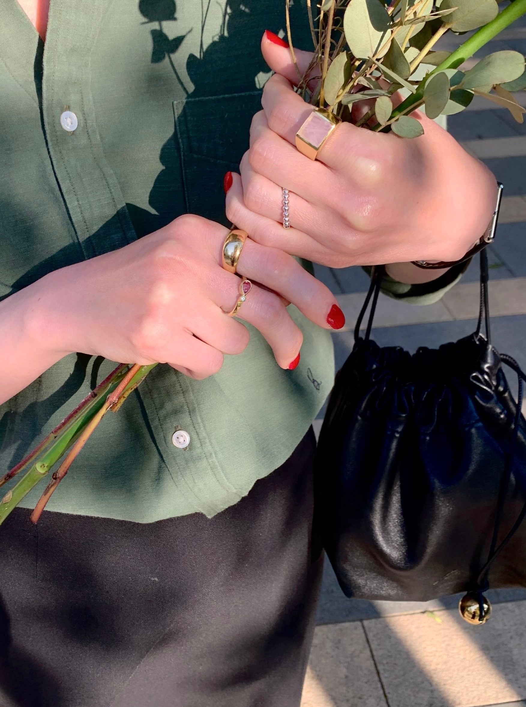 シンプルでありながら存在感と洗練された魅力を持ち、どんなコーディネートにも合わせやすいリング。 滑らかに仕上げられた土台と石が一体感のあるデザインです。石によって全く表情が変わるので様々な種類を集めたくなってしまうかも。