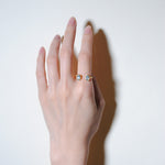 色々なストーンシェイプや石の組み合わせを楽しめるオープンリング。石の大きさに対してやや存在感のあるバンドが、オシャレに垢抜けて見える秘訣。