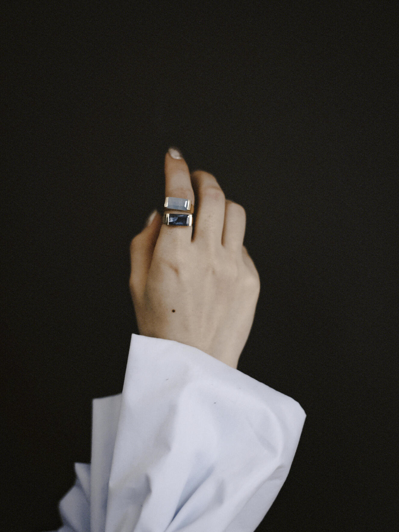 (モアサナイト/gold)handwritten double finger ring