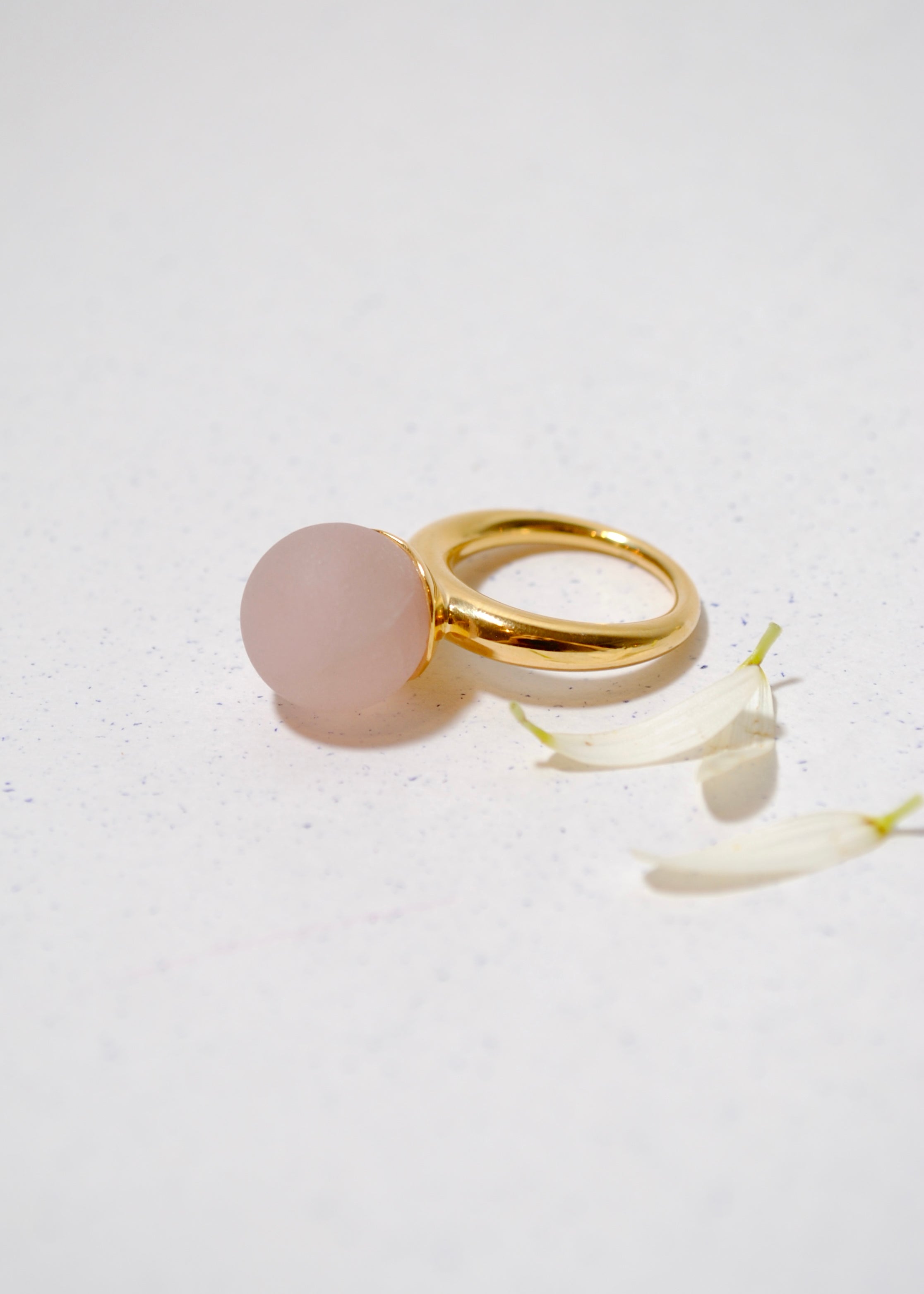 (マットローズクオーツ/gold) acorn ball ring