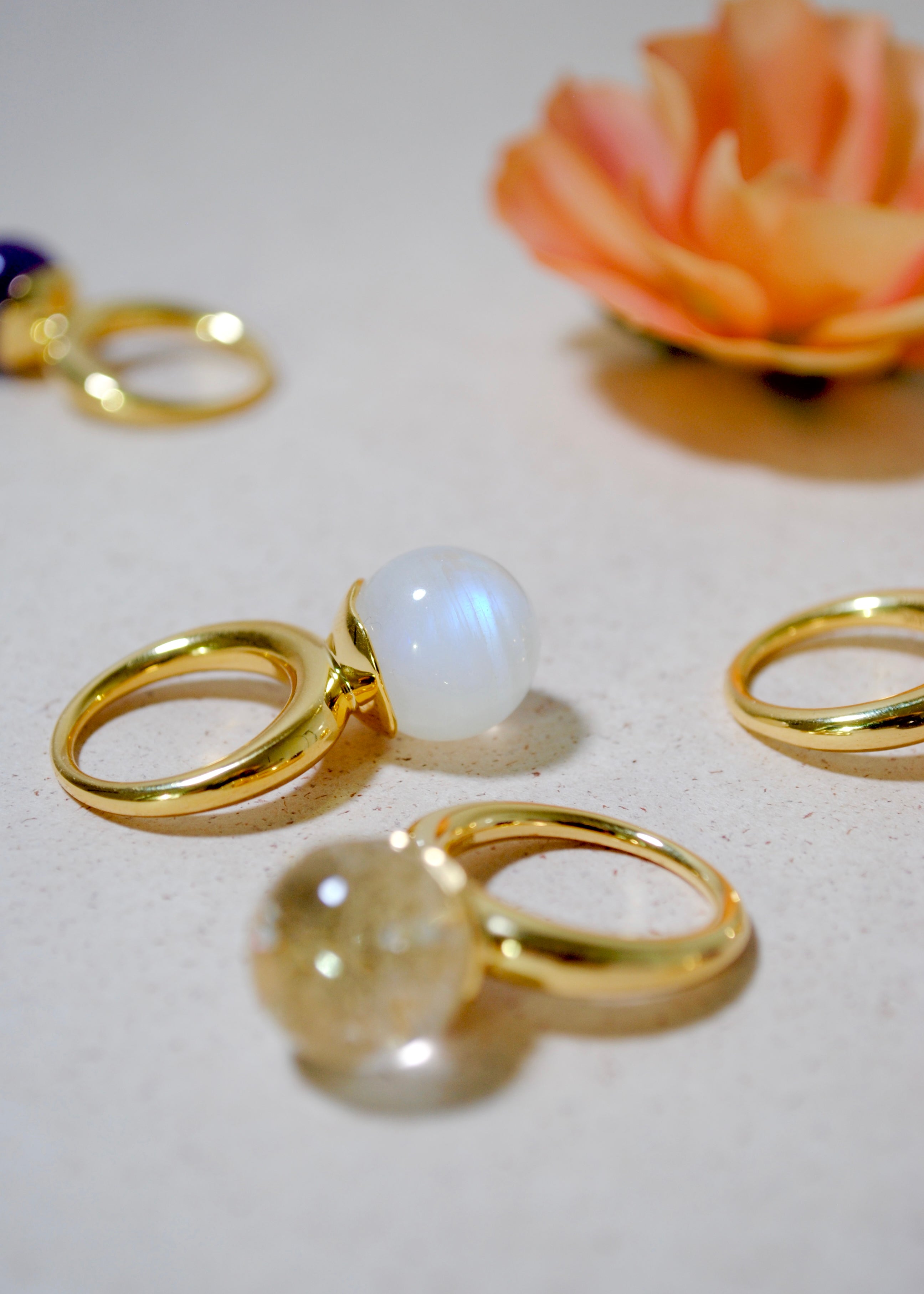 (レインボームーンストーン/gold) acorn ball ring